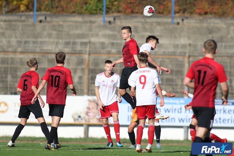 Bis dahin alles soweit OK. Dann kamen wir aus der Pause und in der Mitte schliefen wir total und der Frankfurter Henning zog von Außen nach Innen zum Sechzehner und traf von dort zum Ausgleich. Unsere Jungs waren nur kurz geschockt und spielten weiter, wie im ersten Durchgang gut gestaffelt und konzentriert. Denn einen Punkt aus Frankfurt zu entführen, wäre für uns Goldwert gewesen. Die einzige hektische Phase gab es dann in der 60. Minute, wo wir den Ball nicht aus dem Strafraum bekamen und der Gastgeber gefühlte 2 Minuten aufs Tor schießen durfte. Immer stand ein Spieler von uns dazwischen und zum Schluss Bjarne, der auf der Linie per Brust klärte und den Ball in die Hände von Passow beförderte. Kurzzeitig hatte man das Gefühl, dass das Leder eventuell schon hinter der Linie war. Aber ein Pfiff kam nicht. Dann auf einmal das Fahnenzeichen des zweiten Offiziellen. Alle vermuteten Tor, dann kam plötzlich der Platzverweis für Bjarne Zenk wegen angeblichen Handspiels. Was auch immer der Assistent gesehen hat, der Schiedsrichter hatte freie Sicht und sah komischerweise kein absichtliches Handspiel. Erst nach der Konsultation mit dem Assistenten. Danach blieb es trotz vergeblicher Proteste beim Elfmeter für Frankfurt und dem folgenden 2:1. Damit waren die Messen gesunken, denn schon bei 11 gegen 11 war es für unsere Mannen ein extrem schweres Spiel. So kam es natürlich, dass man kaum noch Kräfte mobilisieren konnte und zum Schluss 4:1 unter ging. Hinten fehlte Abwehrchef Zenk und nach Vorne konnte man kaum noch für Entlastunksagriffe sorgen. Allerdings gab es in der 72´ einen weiten Ball, den Frankfurts Torwart nicht sicher hatte und Lukas um ein Haar noch zum 2:2 ausgleichen hätte können. Sei es wie es wolle, das Spiel war verloren und das dermaßen unglücklich, dass man eigentlich nicht weiß warum man hier am Ende mit 4:1 vom Platz gegangen ist. Bis auf den 1:1 Ausgleichstreffer zeigte wir eine super Leistung, besonders im Abwehrverbund stand der FC lange Zeit hervorragend. Nachdem Platzverweis schwanden die Kräfte und die Konzentration. Schade drum.